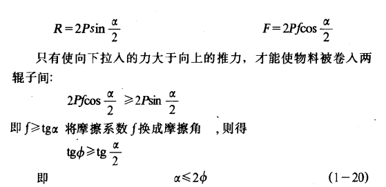 所以,輥?zhàn)娱g的嚙角應(yīng)小于摩擦角的兩倍。