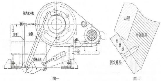二是動顎底板設(shè)計方案有缺陷,動顎底板與動顎聯(lián)接為底端斜扣+上端地腳螺栓固定不動的結(jié)構(gòu)形式,斜扣磨損后,上端固定不動地腳螺栓所受剪切應(yīng)力極大,存有安全風(fēng)險。